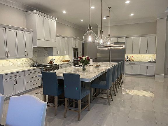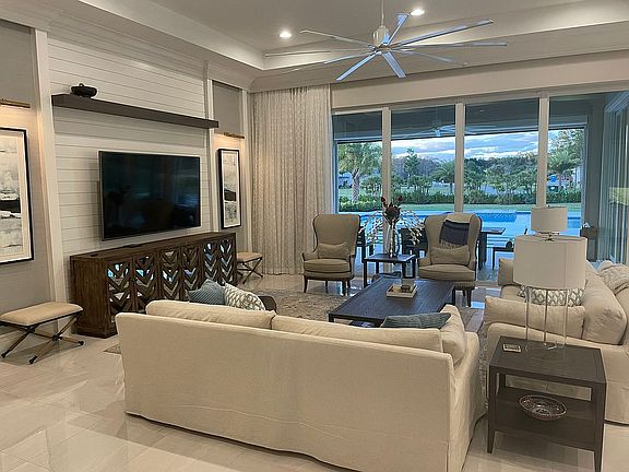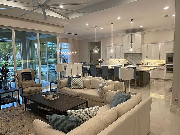 2021 New Build located in Reynolds Ranch in Jupiter Florida. Home is set on 1.5 acre private lot with large circle driveway. Custom chef kitchen with 48" gas range; built in 36" freezer and 36" refrigerator; French door oven and built in microwave. Extra large kitchen island with custom countertops. Extensive 12" crown molding through out home. Master has built in custom closets. Motorized curtains and blinds. The outdoor living is stunning with oversized covered patio and motorized drop down screens, Custom pool and hot tub surrounded by decking and turf. Many decorator touches in this home. Home has full home generator with 1000 gallon underground propane tank. Extensive landscaping boasting Royal Palm lined driveway and many other mature specimen palms. Setting of home boasts long water views and beautiful sunsets. One of a kind community with over 100 acres of private trails and lakes. There is nothing not to like.