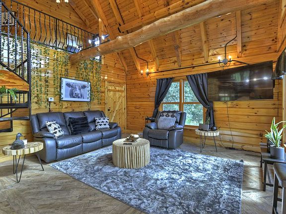 PRICE REDUCTION~Custom Designed Log Home Sitting on over 16.72 Acres~ Private Lot with Close Up Mountain View! Home features tons of Natural Light with the beautiful Wall of Windows, Remarkable Log Beams, Custom Iron Work, Cathedral Ceilings, Tongue and Groove Walls, Recently Updated Kitchen and Appliances, New Floors throughout~ This Unique Beauty is One of a Kind! Being Sold Fully Furnished! This Amazing 2BR/2BA Home sits on a Full Unfinished Basement leaving room to Grow! Main Level features Open Concept Living Area/Dining/Kitchen with one bedroom, one full bathroom, and Decks on Both Ends of the House. The Upper Level is a Large Master Suite with Extraordinary Custom Bath and Private Deck. Enjoy your Personal Oasis sitting on a Mountain Top of this Very Private and Unrestricted 16.72 Acres with Close Up Mountain Views, 3 CREEKS and a Spring. Established Rental History! Only Minutes from Carter's Lake! Dont miss your chance to own your Own Peaceful Retreat! Great Investment Possibility!