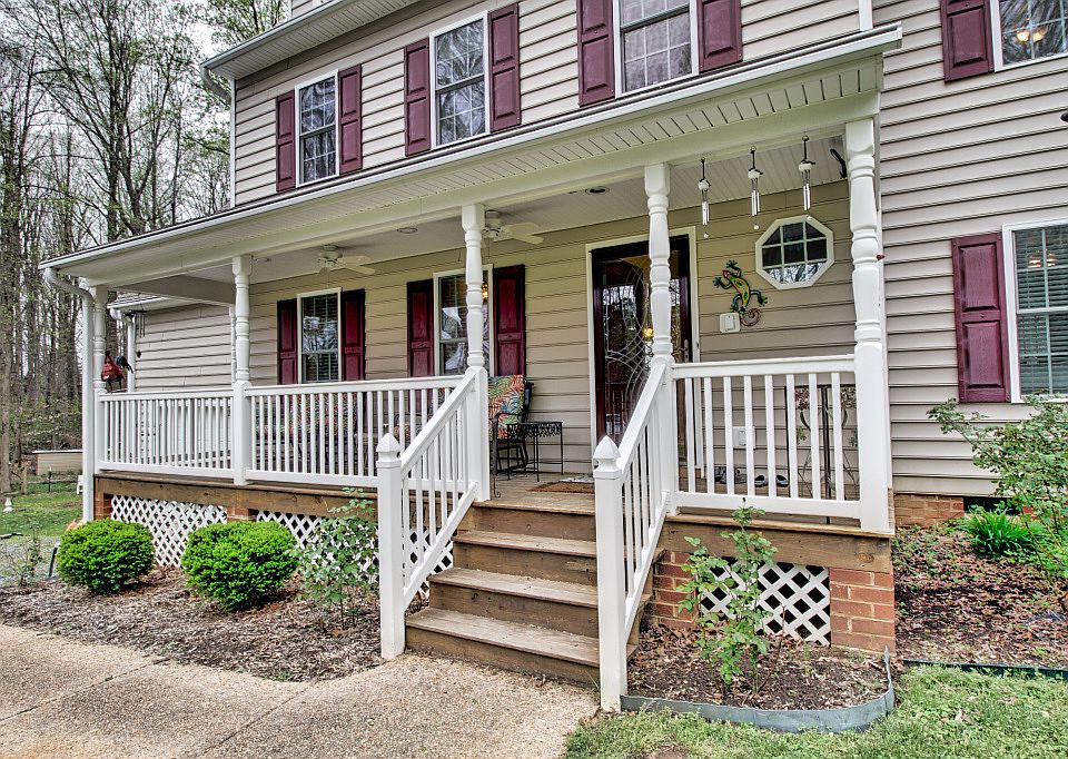 10 MINUTES FROM SHORT PUMP! AWESOME PRIVATE 4.1 ACRES w/ fruit trees, gardens and park like scenery w/4BD&3 Full Baths with office and potential for 5th bedrm 2140Sqft with 1 car garage and Custom made oversized detached shed (conveys as is). Beautiful wide plank hardwoods downstairs & granite & 42âEUR Cherry Cabinets w/stainless steel appl. & island w/eat in kitchen. All appliance convey (as is). Built ins throughout the home. Seller sealed the fireplace but you can covert back to gas fireplace.Chimney & flue convey as is no known defects. Room off kitchen currently used as Dining room/sitting room area but can convert to bedrm. Full bath downstairs. 27x10 Deck off the side room and kitchen that overlooks private backyard. 13x7 Covered porch off pedestrian door from garage. Master Suite has 2 walk in closets, dual vanity master bath. All bedrooms have ceiling fan/light. Large Walk Up/In attic off the office upstairs with huge storage space. Hall bath with dual vanities. 2 zone heating/cooling w/ gas backup,75 gall. propane water heater. Reverse Osmosis Water filtration system w/water softener.Chicken coop conveys as is. Can have horses&animals. No restrictions.Hanover County Schools.