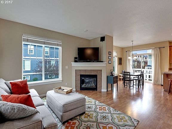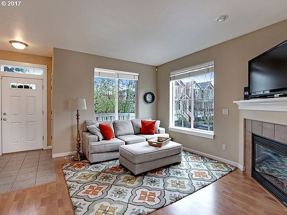 Beautiful end unit townhome in prime location near Nike, Costco, Max & freeways. Light and bright with spacious great room, high ceilings & warm colors. Newer paint and carpet, vaulted master suite with dual closets, 2nd bedroom suite & lower level family rm. Charming front porch overlooks parklike setting, 2 car gar., all appliances included. Perfect 1st time buyer home!