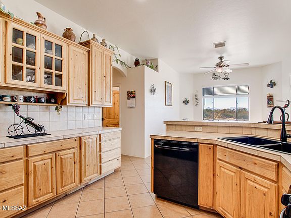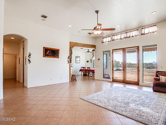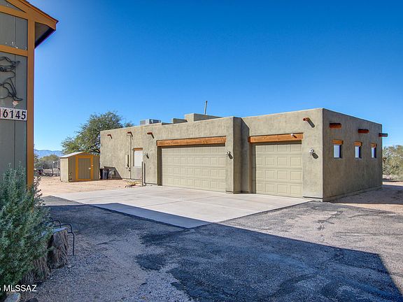 5-car garage alert -- rare opportunity in Diamond Bell Ranch. Santa Fe-style home on 1.25 acres with sweeping views of Kitt Peak and the Sonoran Desert. This 4BD/2BA residence offers an open floor plan, custom mesquite kitchen cabinetry, all appliances included, and solid wood interior doors. Both bathrooms feature jetted tubs and executive-height solid wood vanities. Copper door hardware adds warmth and character throughout. Spacious owner's suite with generous closet. No HOA. Oversized 3-car attached garage plus detached 2-car garage/workshop -- ideal for car enthusiasts, hobbyists, storage or desert toy parking. Enjoy quiet star-filled nights and wide-open desert skies. Fully fenced yard and tranquil desert living at its finest.