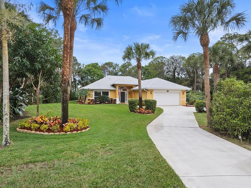 Exceptionally maintained three beds, two baths pool home nestled on 1.15 acres of private oasis. The recently updated modern oversized kitchen adjoins with the living room for the perfect entertainment area that opens directly to the large Florida room and pool/spa. Main bathroom features a stand-alone soaking tub looking out windows that is set up for a relaxing nature view in either direction. Large main bedroom that walks out to the Florida room and pool. The second and third bedrooms share a modern updated bath with shower/tub combo. The split design allows for main bedroom privacy. Large impact windows allow for a lot of unfiltered sunlight. Many upgrades are WIFI including the Garage door opener, HVAC Thermostat and the pool equipment that controls lights, blower and pool/spa heater. There is a list of upgrades in the documents for this property. The property has fruit trees, bushes and plants that enclose the property for a private outdoor living space. Nestled in unincorporated Palm Beach Gardens in the Palm Beach Country Estates neighborhood. Away from everything and near to everything including shopping, entertainment, dining and Palm Beach International Airport.