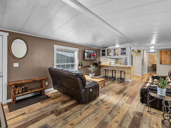 Escape to the country in this great La Pine property! This well-kept single wide is accompanied by a 24 x 25 shop/storage space, chicken coop, and set up for horses with stall and tack room. The entire one acre property is fenced and also includes interior fencing for dogs and horses. The circular driveway has gates at both entrances and additional parking space for an RV or trailers. A covered entry brings you into the home with updated paint and flooring. An open living area and kitchen provide great separation from each of the bedrooms and full bathrooms. The covered back deck has ample room for grilling out and leads to the fenced back yard with a raised garden bed. Septic tank was just pumped. Don't miss out on this opportunity!
