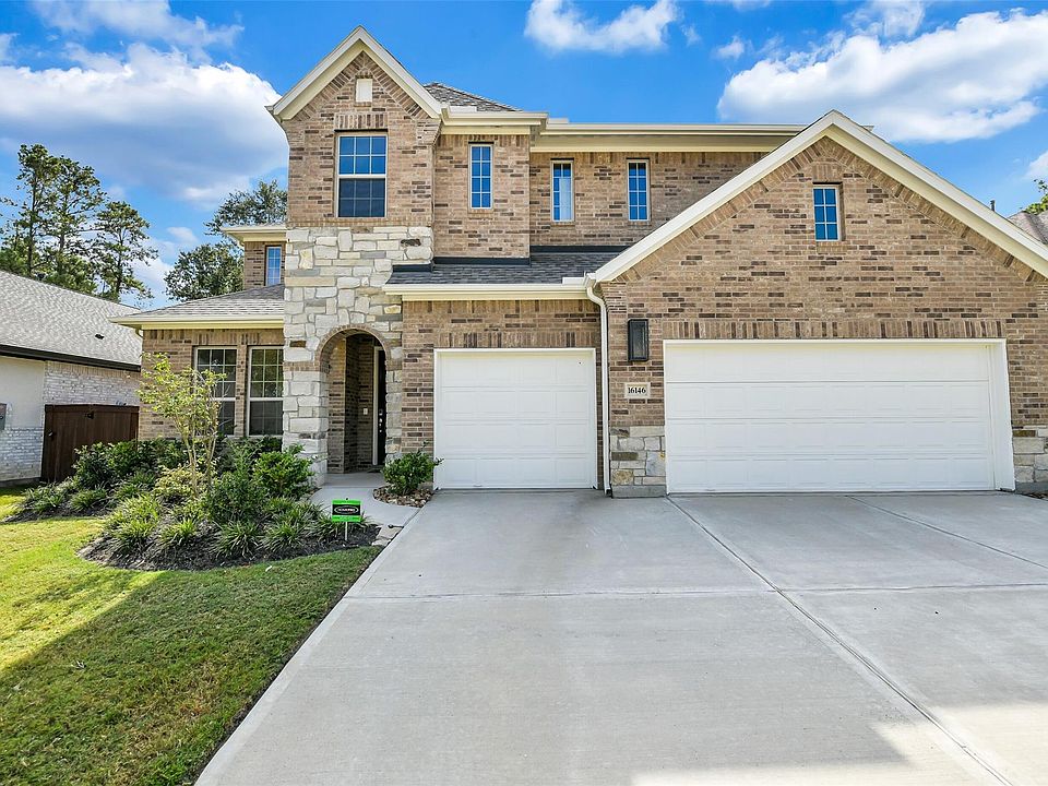 Discover Good Natured Living in the Brand-New Master Planned Community of Evergreen! Located off SH-242 and tucked behind a plethora of trees lies a retreat ready to welcome you home. This fabulous two-story home is wrapped with brick and stone, surrounded by lush landscaping, and rests on a 60’ lot. This two-story plan features 5 bedrooms, 4 full and 2 half bathrooms, a study, and open concept layout complemented with high ceilings. A kitchen with Built-In Kitchen Aid Appliances, a large island, and a plethora of designer cabinetry will have you excited to cook and serve no matter the occasion! Fusing indoor and outdoor entertainment is simple with sliding glass doors and an extended covered patio. Retreat to a Primary Suite with a large bathroom with dual vanities, garden tub, and glass enclosed shower. Upstairs includes 3 secondary bedrooms, and the ultimate entertainment space: a game room and media room. All of this and more await you. Come Live the Difference with Shea Homes!