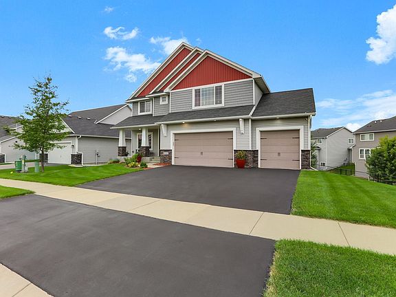 Welcome to this beautifully custom built two-story home! Highly desired and award winning "Maverick" floorplan. This home offers 5 bedrooms and 5 bathrooms. The main level shines with an open concept and its gourmet kitchen that features plenty of cabinets, stainless steel appliances, double ovens, quartz countertops as well as a generous-sized walk-in pantry. The dining room walks out to a maintenance-free deck! The upper level features a private junior suite and a Jack-and-Jill bathroom connecting 2 more spacious bedrooms. The master suite offers a walk-in closet and a private master bath w/ heated flooring. Laundry is on the upper level. Walkout basement offers a large family room perfect for entertaining & 5th bedroom with 3/4 bath! Fully fenced in yard. Oversized 3 car is insulated and heated with coated floors offering plenty of storage. EV outlet has been installed in the garage making it easy to charge any electric car at home! Exhaust fan installed in the garage; perfect for projects. Highly sought after school district 196. You don't want to miss this one! Must See! Only available due to relocation!