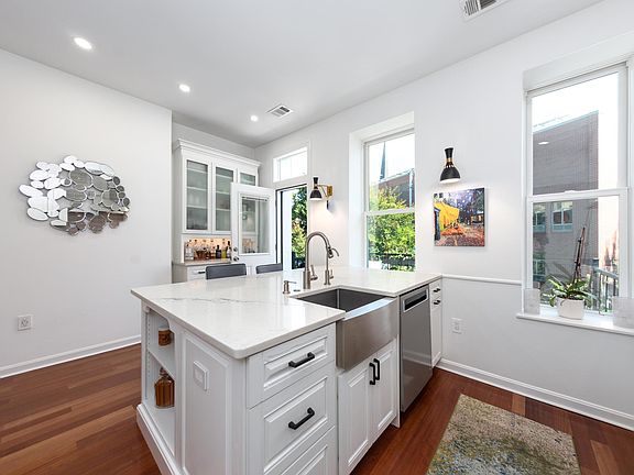 Beautiful, modern two-level 2 BR 2.5 BA light-filled haven housed at the top of an elegant 1886 bayfront Victorian, steps from Logan Circle and 14th Street. Enjoy appx 1700 SF of penthouse living space fully renovated with care in 2020, including a gorgeous chef's kitchen featuring Viking gas range with overhead vent, stunning quartz countertops, glass brick accent wall, big breakfast island w/deep SS modern farmhouse sink, custom white cabinetry offering generous storage, built-in buffet w/bar lighting, built-in wine refrigerator, oversized windows with deck/garden views, plus an adjacent powder room for guests. Throughout the home, you'll love the rich hardwood floors and soaring ceilings, and appreciate special features such as the 'floating' gas fireplace, Marvin windows with differentiated 'quiet' glass, stunning marble ensuite baths for both bedrooms, custom-built walk-in closet, LG washer & dryer, exposed brick, abundant light, and leafy views! Inspired outdoor entertaining and leisure: a large Trex, architect-designed two-level deck with gas firepit overlooking a mature rear garden featuring expansive brick patio, dedicated grill, and pergola under a canopy of wisteria vines. Added value: Solar-power reduces the monthly electric bill of this home by about 90%. See this exceptional residence at 1617 13th Street NW in one of DC's best locations! NOTE: Home is not furnished as shown in the pictures. Unit is available early July. Nearby: 0.2 mi. from Logan Circle 0.3 mi. from Whole Foods P Street 0.2 mi. from Le Diplomate restaurant Convenient to all the popular restaurants, shops & bars of 14th Street in Logan Circle and Dupont Circle Renter pays for all utilities.