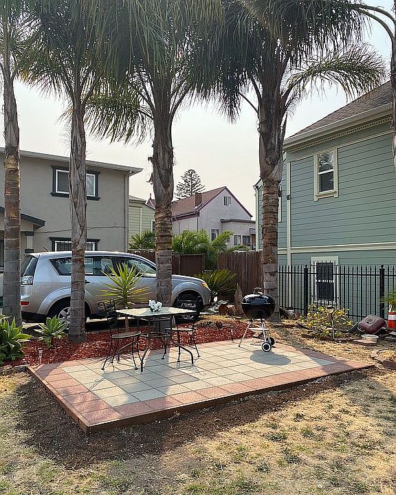 Enjoy living in a beautiful tropical gated setting. Private with remote control ,charming patio with table, chairs and Webber. Vegetable garden and more. Enjoy outdoor Entertaining among the beautiful tropical palm trees. Completely remodeled with laminated and ceramic tile floors Two large bedrooms with wall to wall closet, mirrored sliding doors. Ceiling fans in each room. Double pane vinyl windows with country blinds. One bathroom, shower in tub with state of the art cabinet, sink. Enjoy your favorite song with the blue tooth light fixture. Bright large living room with open concept, decorative ceiling with fan. Opening into totally remodeled kitchen with granite countertop, new cabinets, top of the line stainless steel appliances. One secured off street parking stall with remote control gate. Excellent location close to all transportation. Few blocks to I-880, I-580, 980 and I-80 freeways. Walking distance to West BART station, down town Oakland, coffee shops Resturant’s and parks. Laundry next door. This is the perfect home for you