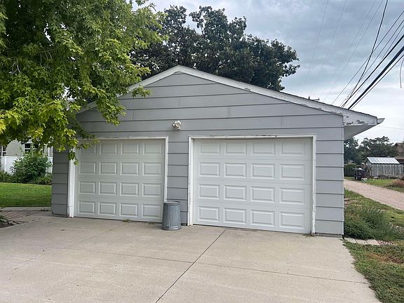 Well kept 2 bedroom, 2 bath home, with steel siding, newer vinyl windows, new carpet in living room and enclosed porch. Hardwood floors in bedrooms, enclosed front porch, vinyl, handrails and fence. Large garden shed, and detached oversized double garage, with 2 openers and remotes. Finished basement with non conforming bedroom. Realtor is related to owner.