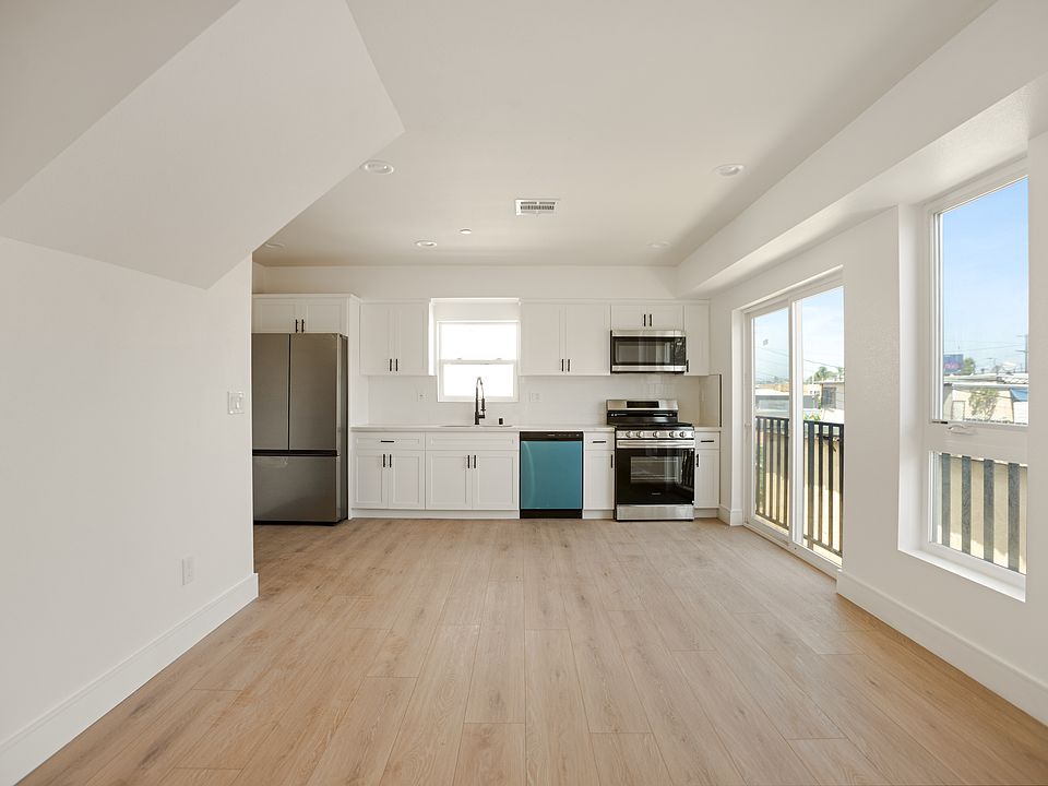 Address: 1615 2nd Ave, Los Angeles, CA 90019 Welcome to 1615 2nd Ave, a beautifully renovated three-story home featuring five spacious bedrooms and three modern bathrooms in the heart of Mid-City. Bright and airy, this residence blends contemporary style with versatile living spaces, perfect for families, creatives, or anyone seeking room to live, work, and entertain. At the heart of the home, the open-concept kitchen boasts sleek white cabinetry, quartz countertops, stainless steel appliances, and a bold black faucet for a sophisticated finish. Wide-plank flooring, recessed lighting, and dual-pane windows bring warmth and natural light throughout, while multiple living areas and a private balcony off the upstairs bedrooms create inviting spots for both relaxation and productivity. Each bedroom offers generous closet space, while the bathrooms feature designer tile, modern vanities, and matte black fixtures. Additional highlights include in-unit laundry, central air and heat, and gated parking. Ideally located near Culver City, Downtown LA, and the 10 Freeway, this turnkey home combines comfort, convenience, and modern design in one complete package.