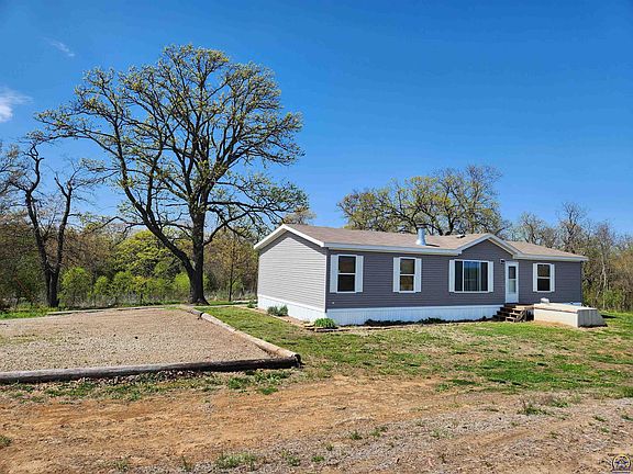 For those looking for a newer country home close to pavement, on small acreage with a shop and woods thick with abundant wildlife look no further.  This 2018 Manufactured home from Skyline Homes of Arkansas City, Kansas is located a 1/4 mile off of pavement and just a couple of miles South of Horton. The home is a 3br, 2ba ranch with an open layout and two decks so you can enjoy your morning sunrise and evening sunsets or enjoy sporting a turkey, deer, or both! The 30x30 metal shop added in 2020 is mostly insulated with concrete floor and plenty of overhead storage. Welcome to the country!