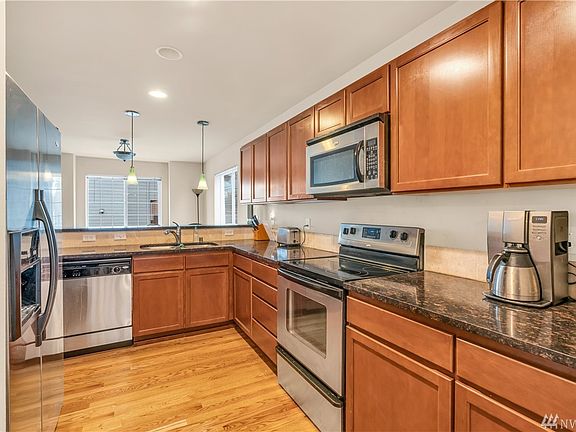Quality & comfort throughout this spacious 4/bed stand alone town-home. This very roomy floor plan flows w/natural light. Chefs will love the kitchen w/slab granite, hardwood floors, SS appl. pantry & large dining area. Cozy living rm w/gas fireplace. Master w/bath, 2 more beds upstairs, full bath and laundry. Lower level features 4th bed and full bath. Deep tandem garage with some storage, low dues, corner unit, Minutes to BOEING! Please text phone to show at least 30 minutes before showing