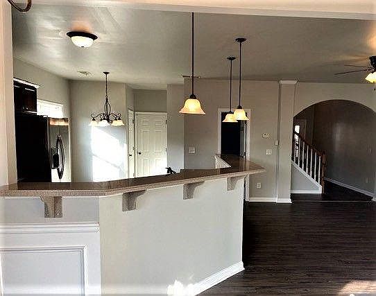 - Kitchen Features: Breakfast Bar, Cabinets Stain, Pantry, View to Family Room, Breakfast Room, Solid Surface Counters