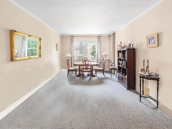 As you enter you the grand foyer features three large closets and is perfect for a dining table followed by a grand sunken living room with three windows and two exposures, the king sized primary bedroom has great closet space and multiple windows, the bright second bedroom features three large bay windows, and can serve multiple purposes; bedroom, guest room, office etc, the eat in kitchen features tons of storage, the windowed bathroom is roomy with a large tub.