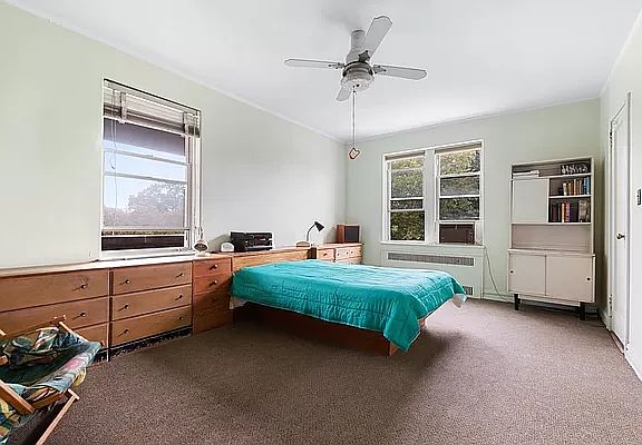 This 5th floor three-bedroom apartment with a terrace and two full bathrooms offers the buyer looking for a lot of space, unobstructed south and west-facing light and the convenience of a subway one block away, the near perfect apartment. The bedrooms are all king-sized -- in fact, one of them was once the living room of the adjoining apartment, and is huge. There is a large entry room, too big to call a foyer, that can serve as a dining room for the largest family gatherings; the living room is also spacious, and leads out to the terrace. The apartment has been meticulously maintained but will need updating; the kitchen and bathrooms are original, dating back to the 1940s. The kitchen will definitely need a redo and there is room to expand it. The bathrooms are in excellent condition and need nothing unless you prefer a more modern look. The coop, Terrace Gardens Plaza, sits in the northernmost part of Midwood bordering Ditmas Park. It's well managed, financially solid, has a full-time maintenance staff, a part-time (18 hours a day) doorperson. The grounds are landscaped and the streets are tree-lined. There is parking ($115/month with a short waitlist), laundry and bike storage ($5/month) in the basement. The subway, shopping and a library are one block away.