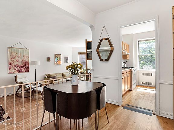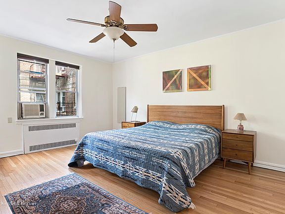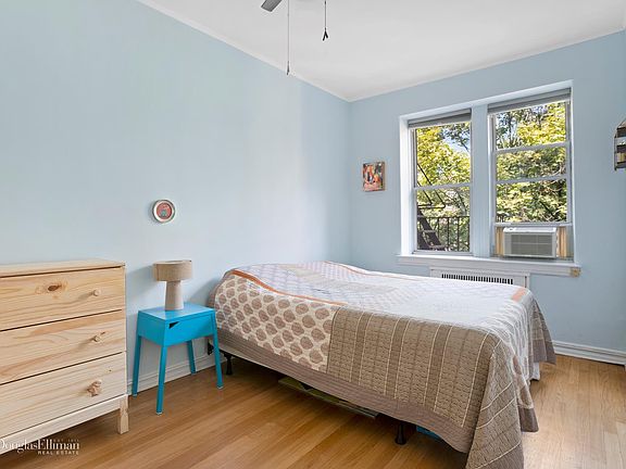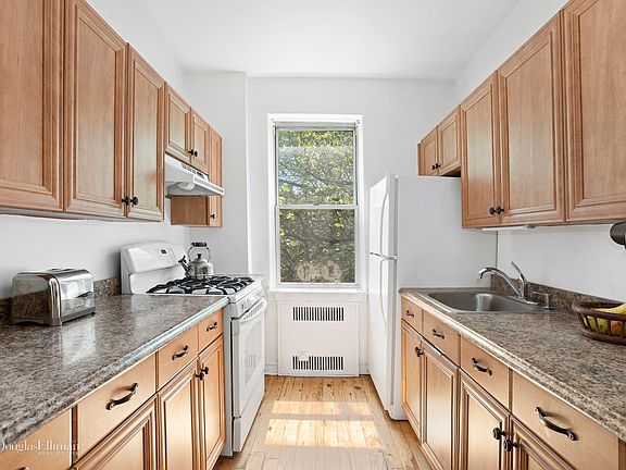 Extremely bright and beautiful 2 bedroom/1 bathroom has hit the market at Terrace Gardens Plaza in Midwood, Brooklyn. Unit 512 is south facing and flooded with light while overlooking tree-lined 17th street. The apartment has pre-war charm with an arched entrance to the living room, and a favorable layout where the kitchen and dining area open up into the living room. The windowed kitchen has a gas stove and lots of storage and counter space. The master bedroom is a king-sized bedroom with huge closets, while the secondary bedroom easily fits a queen size bed and also has a lot of storage space. The bathroom is windowed with a stall shower and bathtub. Terrace Garden Plaza is a doorman building with a live-in superintendent and has a common courtyard, upgraded elevator, brand new laundry room, bike storage for $5/month, storage room and even has indoor parking available on a short wait list for $130/month. The Q and B trains are less than a ten-minute walk.
