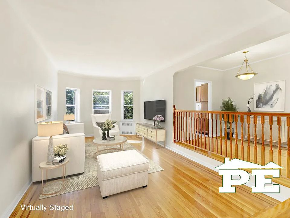 Charming 2-Bedroom Co-op for sale in Midwood. This top floor unit, on the 6th Floor, is quieter and brighter than others in the building. Upon entering, there is a long hallway separating the outer common hallway from the inner rooms which eliminates/muffles any conversing by people awaiting the elevator. The efficient layout consists of a sunken Living Room, a Dining area, a Kitchen with a Window, a Full Bathroom with a Window, Tub, and separate Shower, a King-Sized Bedroom, a Queen-Sized Bedroom, and a flexible Foyer / Office area. This apartment is replete with architectural delights not to be found in new construction. It boasts lovely arches between rooms, deep window sills which welcome large planters, 7 enormous deep closets, not to mention a good-sized storage area inside the spacious bathroom. The windows face the front and the back of the building which offers unblocked views. Hardwood floors throughout are of extremely high quality. The high ceilings make the apartment feel airy and spacious. The Updated Laundry area is in the basement. The monthly maintenance of $1096.54 includes Heat, Water, Real Estate Taxes, and upkeep of the common areas. Owner pays for Cooking Gas and Electricity. The Co-op has evening Security patrol, on-site Super and Porters, welcomes Pets under 20 lbs, and allows Subletting after 2 years with board approval. Storage bins available for $75, Bike Room $5, and Garage Parking $120 with a short waitlist. The building requires proof of 4 years financial assets after purchasing. For fresh air, there is a lovely sitting area behind this building shared with the rest of the complex. The surrounding neighborhood provides many convenient amenities such as shopping, restaurants, a library, schools, buses, and a train station a block away. Brooklyn College is within walk distance. With ZERO Flip Tax and Solid Financials, this will not last. Come and take a look for yourself!