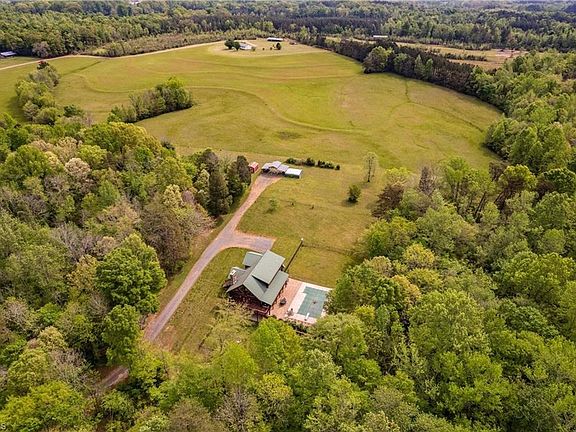 WELCOME HOME to your amazing retreat perfectly situated on 10.54 acres! This gorgeous custom log cabin offers 2400+ sf above grade & a perfect blend of rustic charm & modern comfort. Step inside to discover high vaulted ceilings & hickory wood floors complemented by a beautiful stone wood-burning fireplace, creating a warm & inviting atmosphere. Open floor plan on main level. Primary bedroom conveniently located on main level as well as upper level. Enjoy breathtaking views from the upstairs loft, flooded with natural light through the expansive windows. Love to entertain? The impressive basement space is complete with a built-in bar & ample room for recreation & relaxation. Covered porch perfect for relaxing & overlooking the fenced yard with inground pool. Multiple structures provide ample storage for all your needs, from farm equipment to RVs. This home truly has it all, offering a sanctuary where you can live, entertain & embrace the beauty of nature. Book your appointment today!