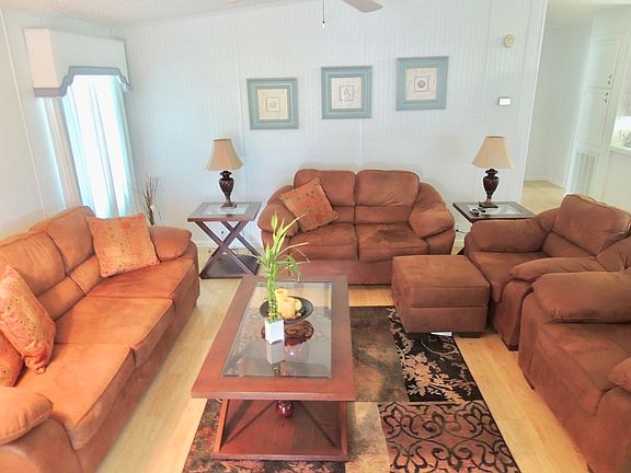 1995 Palm Harbor 2 bedroom 2 bathroom home with 1344 square feet. Great storage space in kitchen with all the beautiful white cabinets. Over head and bottom storage makes it great to store all your cooking needs. There is a breakfast nook to sip on your morning coffee. Laminate and carpet throughout. Wide hallway. Great curb appeal with the new rocks and the front deck. All season lanai. Flag pole installed, just bring your favorite hanging flag! Roll up shed door. Home is sold turn key and includes a golf cart.This home is located Cypress Lakes, Lakeland FL in a 55+ community on a leased lot.  Amenities include two pools, two hot tubs, Fitness center,  Full-time staff fitness instructor, Tennis courts, Bocci ball courts, Pickle Ball, Horseshoes, Clubhouse, 24 Hour Manned  guarded gate , lawn mowing and trash pickup and property taxes.  Lot leases range from $640-$879