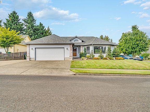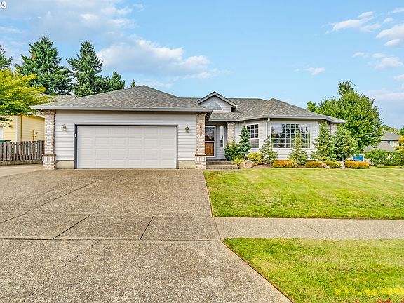 Beautifully maintained 4-bedroom Ranch in popular North Newberg location, Bramble Creek. Schools, shopping and the Allison Inn nearby. Formal living room and family room off the well-appointed kitchen that includes updated solid surface counters. Fully fenced Private back yard with stunning water feature, low maintenance patio and grass area. Huge master suite with full bath including double sinks and dual closets with great storage. Fully paved RV parking. NEW EXTERIOR PAINT WITH 2 YEAR WARRANTY.