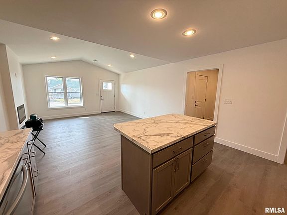 Beautiful new construction with high end furnishes! This nearly completed 3 bedroom, 2 full bath, with 1330 sf, all on one level home with no steps whatsoever is well built with 2 x 6 construction, energy efficient, and well insulated. Open floorplan with the kitchen overlooking the living room with vaulted ceilings. Gorgeous cabinetry and a walk in kitchen pantry gives you a bunch of kitchen storage. Large kitchen island with an electrical outlet. Durable vinyl plank flooring throughout--no carpet. High end fixtures and tons of recessed lighting. Stainless steel appliances. An abundance of closet space including walk in closets for all bedrooms. Attached 1 car garage and alley access to possibly build a future detached garage. 2 large covered porches. Grass will be planted. Taxes based on land only. Pictures will be updated when construction is complete. New parcel number will be given. Priced $5K lower than recent bank appraisal. Broker owned.