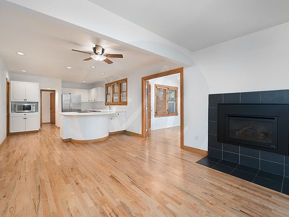This remodeled home in Cheyenne Canyon is just down the street from the historic Broadmoor Hotel. Upon entering, you step into the living room and are greeted with beautiful natural wood planking on the floors, walls, and ceiling along with a large floor-to-ceiling natural stone gas fireplace, you will think you've just stepped into a Colorado mountain lodge. The large living room is also filled with windows, with views of the wrap around front porch. Just off the living room area is the front office with french doors, that is also filled with windows, really allowing for the natural light to come in. The upgraded kitchen has ample cabinet space as well as all your necessary appliances including a flat glass top stove and a large breakfast bar. Attached to the kitchen area is a dining area with another gas fireplace for added ambience. A large mud room with french doors is attached to the full size laundry room which has additional cabinets for added storage space. Also on the main level is one bedroom and a full size bathroom. Upstairs you will find the primary suite with another gas fireplace as well as a private a/c unit, for added comfort. An attached bathroom with stand up shower stall, double sink vanity, and ample closet space finishes out the unique features inside this home. The beautiful, private backyard backs up to a quiet cul-de-sac and the front driveway is gated with a coded private entry. The detached two car garage will be an available option in May 2025 for an additional $250 per month.