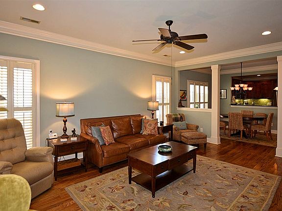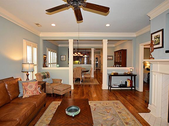 • LIVING ROOM DESC: 9? Ceiling, Fireplace, Crown Mold, Smooth Ceiling, Window Cov, Wood Floor, Ceiling Fan, Recessed Lighting, Built Ins