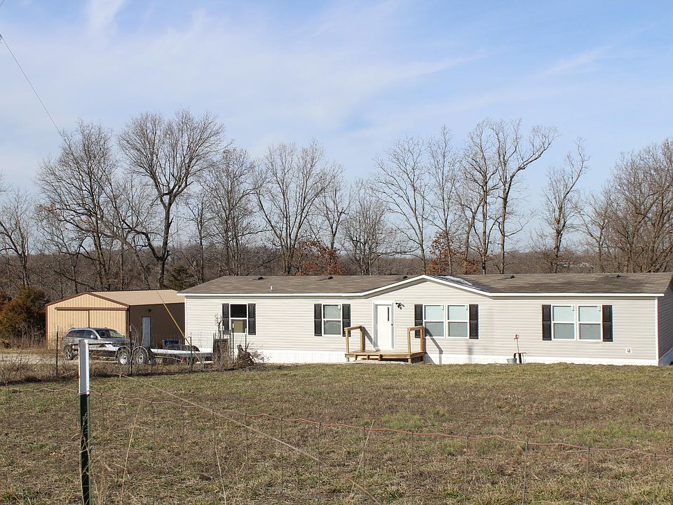Enjoy a wildlife oasis in your own back yard. This property sits on Sac River Bluff, just off Hwy 13, it's only 15 minutes to either Bolivar or Springfield. The front yard is cleared and fenced with a big garden area. Bear Creek flows through the north end of this 13 acres. The 2022 manufactured home has 4 bedrooms and 2 baths and there is a 23x36 ft. detached garage/shop with a concrete floor.
