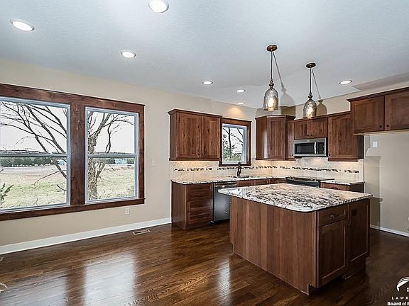 New Construction home with views of KU and close to I70 and Downtown. Main floor master with 4 bedrooms and 2 large living areas with daylight basement. Arched doorways in upstairs livingroom with hardwood floors and custom kitchen granite and cabinets. Oversized 3 car garage and custom decorative concrete on driveway/porch and front side walk. So many extras including a covered deck looking into undeveloped green space. Hurry quick before this one is gone!