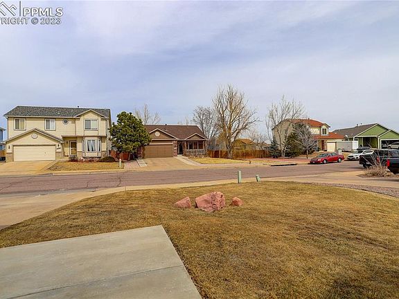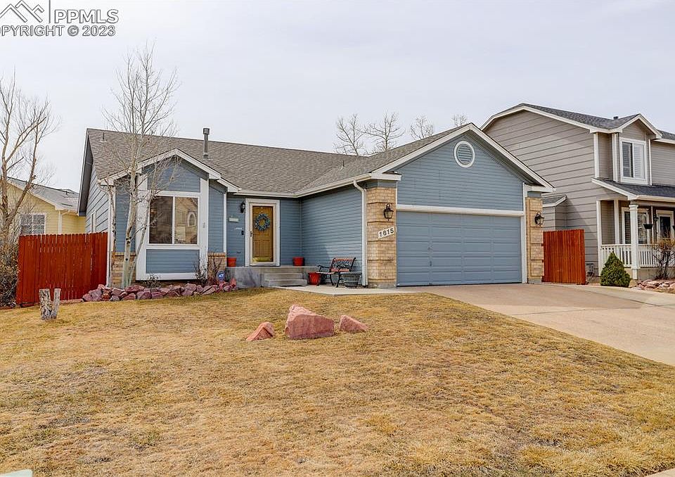 Sought after rancher floorplan in Cheyenne Meadows. The eat-in kitchen offers a vaulted ceiling with recessed lighting, granite counters, and an undercounter sink with updated faucet. A hand-through window provides ease of access to a wonderful entertainment space shared by the dining area and the walk-out living room with a gas fireplace. The dedicated primary suite features vaulted ceilings, a ceiling fan, and an en-suite ¾ bath with a custom tile shower. The main level is completed by two bedrooms, a full bath, and access to the 2-car garage. The stairs lead down to a spacious rec room that boasts recessed lighting and a granite countered dry bar. There are an additional two bedrooms, laundry space, and full bath. Enjoy the great outdoors from a stamped concrete patio overlooking a fully fenced and xeriscaped backyard, with an added parking space. Within easy driving distance of Fort Carson and nearby shopping centers.