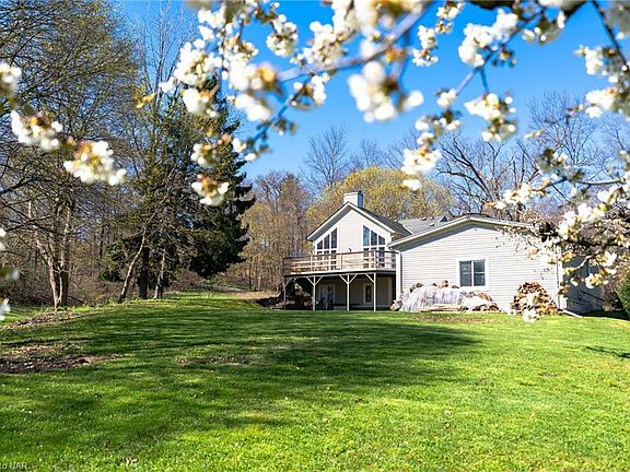 WELCOME TO THIS PICTURESQUE 2.9 ACRE COUNTRY PROPERTY WITH SKYLINE VIEWS. SEE NIAGARA FALLS, TORONTO FROM THE UPPER DECK. TRANQUIL VIEWS OF THE ORCHARDS, SLOPED LANDS AND NATURAL BUSH, NEXT TO LATHROP NATURE PRESERVE. THIS IS A RARE PIECE OF PROPERTY THAT'S ONLY 2 MINUTES TO TOWN SQUARE. ACROSS FROM LOOKOUT POINT GOLF COURSE. CLOSE TO SCHOOLS, AND MANY AMENITIES. THIS SPACIOUS FAMILY HOME HAS A SEPARATE ENTRANCE TO THE LOWER LEVEL WHICH IS MOSTLY ON GRADE LEVEL IDEAL FOR INLAWS OR TEEN AGE CHILDREN. BEAUTIFUL VIEWS FROM THE MAINFLOOR GREAT ROOM WITH VAULTED CEILINGS AND FIREPLACE. MAINFLOOR PRIMARY BEDROOM WITH WALK IN CLOSET, LARGE KITCHEN/DINETTE WITH LOADS OF WINDOWS OVERLOOKING THE WOODED LOT. UPPER LOFT CAN BE USED AS A BEDROOM OR SECOND LIVINGROOM/DEN. LOWER LEVEL BEDROOM , CEDAR CLOSET, 3 PIECE BATH MOSTLY ON GRADE LEVEL. AWESOME 3 CAR GARAGE MAKES A GREAT SHOP WITH LARGE DRIVEWAY TO ACCOMMODATE MANY CARS, RV, BOAT, TRAILER. THIS PROPERTY IS A ONE OF A KIND- BEST OF BOTH-COUNTRY SCENIC VIEWS ON 2.9 ACRES YET MINUTES TO SHOPPING, BANKS, RESTAURANTS, SCHOOLS.