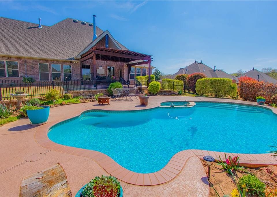 Welcome to wonderful Cascata Falls, located just a short drive north of downtown Edmond with close proximity to I-35. If you like star filled nights and spacious lots, this is the perfect place to call home. This immaculately cared for home features three bedrooms, a handsome study, huge game room, formal dining area and great room with soaring ceilings and warm fireplace. The spacious kitchen has a large center island and tons of cabinets. Some extras that the homeowner has added for your enjoyment include plantation shutters throughout, a sparkling in-ground pool, water well, enormous covered back patio and brand new carpet throughout. Imagine the spring and summer months in the well-landscaped back yard with refreshing pool and attached spa. Seller added a separate water well only to be used for outside landscaping and pool. This home has everything you've been looking for and more. What are you waiting for?
