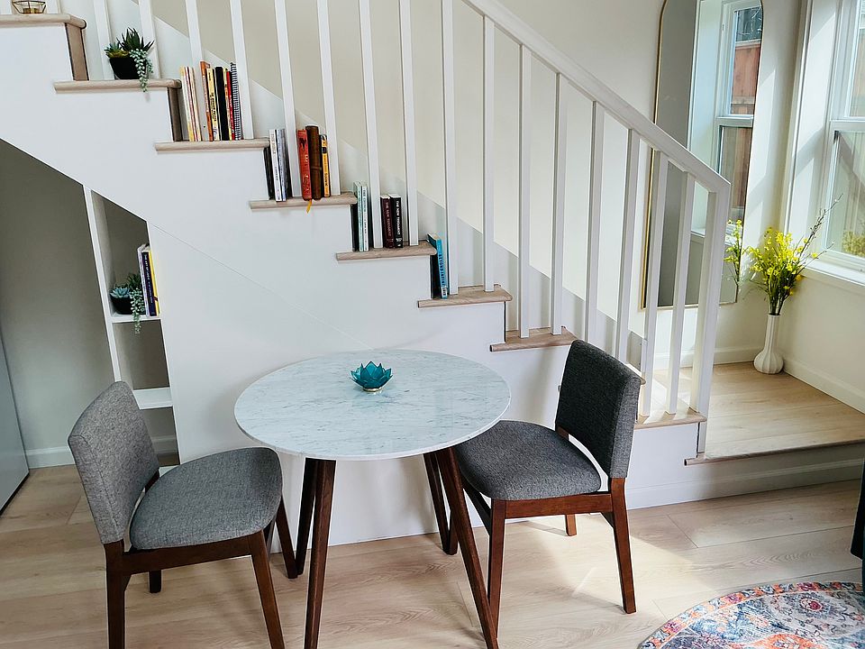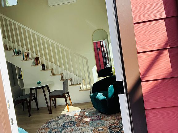 This is a well-lit, charming newly build small 2 bedroom/2 bathroom ADU in a very quiet neighborhood. The home: It is brand new so all electrical and fixtures are new and all lights are dimmable. It has everything you need. Dishwasher, microwave and laundry in unit. Each room has its own AC and heating with a remote control. It also has its own small front yard suitable for lounging, grilling etc. It is tastefully furnished and storage area has been maximized including cabinets by the washer/dryer and extra storage behind the stairs. The stairs serve as a book shelve as well. There is also additional storage room outside for luggage cleaning supply/extra cloth/shoes/tools etc. It also has two skylight windows and has an airy feel to it, as it has a very high ceiling. The location: Ohlone park and toteland are a couple of blocks away, especially if you have a child. Plenty of historic spots including first Peet's coffee shop, ACME bread. etc. home is located within 7-15 minutes walk to N. Berkeley Bart, (7 mins), the Gourmet Ghetto with all the restaurants including cheesboard, coffee shops and Ohlone park. Groceries (Trader Joe's, Monterey Market and Andronicles, Safeway all short walks away). Home is near/walking distance to the historic Gourmet Ghetto (former name) Neighborhood walking distance from cheeseboard, Saul's, Gregoire, Epicurious Garden (which has many eateries inside), and many other restaurants down town Berkeley within 10-15 minutes walk to downtown Berkeley. It is tastefully furnished and has basics in the kitchen to get you comfortably settled in right away.