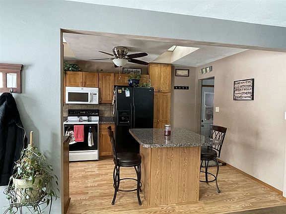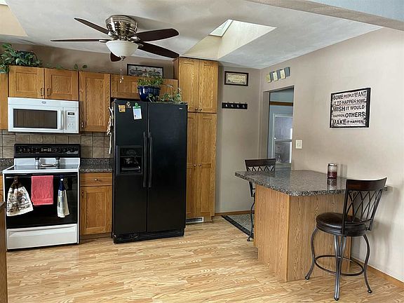 3 bedroom, walk-out Ranch with several updates/improvements. Newers include kitchen with skylights, roof, HVAC, and CB. Some hardwood and laminate flooring. Bath remodeled. Kitchen island is moveable. Deck off back of garage, French doors to deck off lower level Family Room. Gas insert in Family Room fireplace. Fenced rear yard and shed. Garden plot in rear yard.