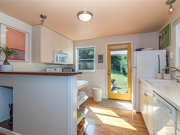 Highest and best offers, to be submitted no later than 7pm tomorrow - Saturday June 13th. Please submit all offers on the SmartMLS Purchase Agreement form, along with a pre-approval letter or proof of funds, signed disclosures, attorney information, etc.. Welcome Home! Adorable 3 bedroom Cape located on quiet street. Drenched with natural light, this home features hardwood flooring throughout and an open floor plan - perfect for both living and entertaining. Updated kitchen with quartz countertops and a breakfast bar which opens to a spacious dining room & large family room. First floor bedroom and Updated full bathroom completed the First floor. Upstairs are two large bedrooms and another updated full bathroom. Partially finished lower level. Private flat backyard with fencing, mature plantings, wooden deck and stone patio. Natural gas heat, Central A/C, 1 car attached garage.
