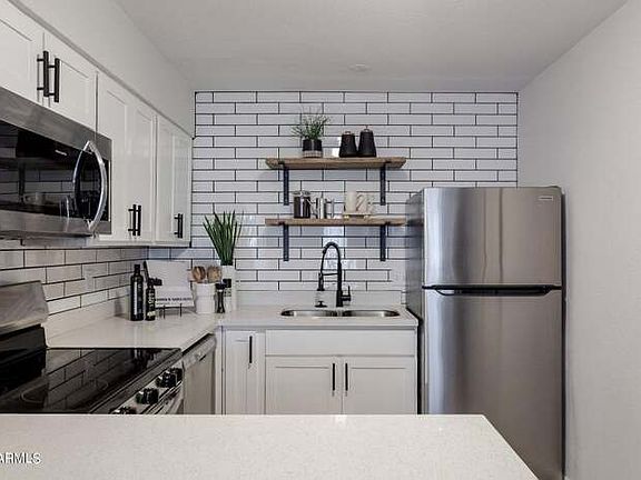 MOVE IN SPECIAL $1,000 OFF TOTAL MOVE IN COSTS ON A 13 MONTH LEASE- DEPOSIT REDUCED TO *$500* (OAC) Fully remodeled 2bed/1bath unit in excellent location! Just minutes to Old Town Scottsdale, Tempe, Airport and so much more! Beautifully updated, all tile throughout, light and bright spacious floorplan, kitchen offers stainless steel appliances, quartz countertops and ample cabinet space! Two nicely sized bedrooms and a charming bathroom with modern fixtures, fresh interior paint, ceiling fans throughout AND washer/dryer in your unit Plus recently updated exterior! Rent includes water, sewer & trash. You don't want to miss this opportunity! Schedule your viewing today! *Other units available, same floorplan and interiors - call for availability* Tenant/Agent to verify all facts and figures. AZ Real Estate and Property Management John Fagundes, Broker Contact us to schedule a showing.