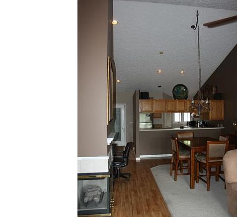 Great water views. Condo waterfront living at Meyers Lake. As you enter condo there is a stairwell that leads to 2nd floor where condo is all on one level. Fantastic open floor plan with great living space. Updates include hardwood flooring, carpet and paint. Two large bedrooms with Great room and Kitchen. Relax on the deck overlooking the water or take spiral staircase down to your own personal dock. Excellent location to major highways, shopping, and entertainment.