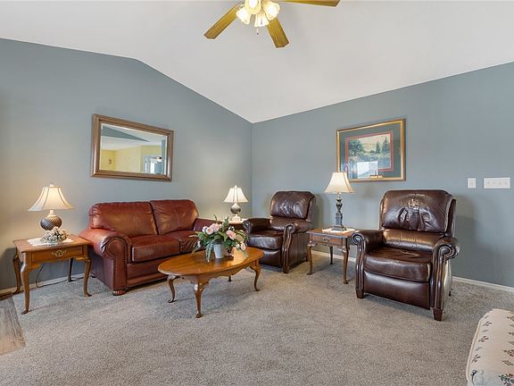Welcome to this charming 3-bedroom, 2-bathroom home, perfectly situated in a desirable 55+ community. With vaulted ceilings and an open floor plan, this residence offers a spacious and airy feel throughout. A highlight of this home is the sunroom, a serene space filled with natural light—ideal for relaxing, reading, or enjoying your morning coffee. The primary suite is a true retreat, featuring a walk-in shower in the en suite bathroom for ease and comfort. Two additional bedrooms provide versatility for guests, a home office, or hobbies. Designed for low-maintenance living, this home is perfect for those looking to enjoy a vibrant and welcoming community. Schedule a showing today and discover the charm of this wonderful property!