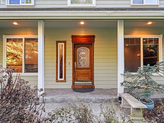 Exceptional custom home with expansive living space, flexible layout, and premium amenities. Two primary suites plus two additional bedrooms offer ideal options for multi-generational living, guests, or home offices. Large windows provide abundant natural light and peaceful Northwest views. Gourmet kitchen features custom cabinetry, high-end appliances, granite counters, oversized island, walk-in pantry, and ample storage. Multiple living spaces include gas fireplaces, hardwood floors, formal dining, and easy access to outdoor living with automatic window shutters. Main primary suite includes a private balcony, spa-style bath with soaking tub, tiled walk-in shower, dual vanities, and walk-in closet. Fully fenced grounds provide privacy, garden space, and room to entertain. Oversized finished garage with extra depth, three doors, storage, laundry, and attached powered workshop—ideal for hobbies or flex use. One-owner, meticulously maintained home with thoughtful design throughout.