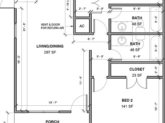 - Total interior livable area: 1,000 sqft