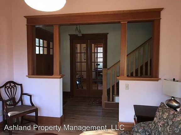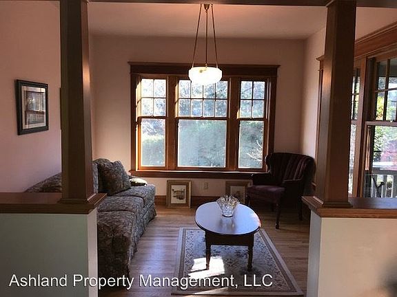 Craftsman style executive rental... Available through May 31 - Built in 2000 as a classic craftsman this home features 3 bedrooms and 2.5 baths. There is custom wood work and hardwood floors throughout. Furnished with many antiques. There is an open kitchen living area that features a fireplace with built ins. Formal sitting room and quiet work spaces make this a home comfortable and cozy. There is a large master suite with majestic views of the mountains. There are new linens and beds in every bedroom. This home comes with a fully equipped kitchen with everything you will need in an executive rental to provide you with a comfortable stay in Ashland. Dont miss the hiking trails right outside the house. Great neighborhood, conveniently located close to the University ,shopping and downtown. Attached two car garage located in lower level basement. All utilities paid, including Internet and yard care. Call Ashland Property Management at (541) 488-2761 for more information or to schedule a tour. Online rental applications can be found at www.ashlandpropertymanagement.com (RLNE3768117)