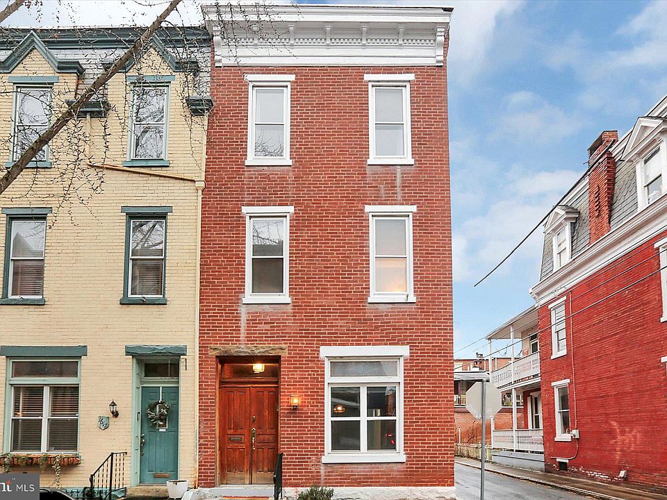 Welcome to this charming end unit townhome in Historic Midtown on the popular and quaint Penn Street. Upon entry through the Beautiful Wooden French Doors you will notice the Exposed Brick Wall that ascends all 3 stories. The Original Stained Glass Window and Pine Hardwood Floors adorn the Spacious Open Living Room & Dining Rooms. The living room showcases 2 floor to ceiling bookcases. There are two entries into the expansive eat-in kitchen with a center island, updated with high end SS appliances, fresh paint, new ceiling, lighting and luxury flooring (2022). There are sliding glass doors that lead to the deck area and fully fenced courtyard. The 2nd floor boasts a beautiful newly remodeled full bath (2022), two graciously sized bedrooms (1 with a walk-in closet and the other with 2 wall to wall closets), 2nd floor laundry, updated laminate flooring and fresh paint. The finished rear 2nd floor bonus room can have many functions and gives access to the side balcony. The owners suite spans the entire 3rd floor with rustic original hardwood pine floors, an updated full bath with walk-in shower and the custom glass sink that lights up. There is a large dressing area with multiple closets and a separate bedroom area with an exposed brick wall. The home features Central Air, Gas Forced Air Heat and an efficient Nest thermostat. Enjoy the convenience of the walking distance to local establishments like Little Amps, Zero Day, Broad Street Market, Note Bistro, Millworks and much more. Come see why this would be the perfect home for you!