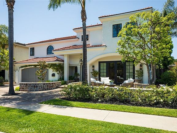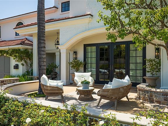 Welcome to this gorgeous remodeled French inspired home boasting designer touches and endless attention to detail throughout. The open and grand entrance, with a stunning floating staircase featuring custom wrought iron railings and dramatic high ceilings, draws you in and leads you towards the great room showcasing a custom limestone fireplace that warms the space, while an abundance of windows fills the house with light and warmth of the outdoors. This spacious floor plan offers six bedrooms with two large primary en suites, both with generous lounging areas and spa-like bathrooms. One is located downstairs with two nearby bedrooms, while the other is just a few steps away off a private stairway. Two additional bedrooms and bathroom are also located upstairs off the main staircase. Rich Du Chateau wood plank floors throughout the main level, smooth textured walls, kitchen and bathrooms wrapped in marble flooring, walls and countertops, wainscoting, custom built-ins, designer light switches, cased windows, exquisite crown molding, high end brass fixtures from Waterworks and custom closets, are just some of the many features that add to the beauty, charm and sophistication of this home. The newly remodeled entertainer’s kitchen is the perfect gathering spot, displaying an oversized island with Quartz counter tops, seating for eight and a Viking six-burner cooktop. Eye-catching stainless-steel appliances, a farmhouse sink, and custom built-ins fill the space which is complimented by a quaint breakfast nook that doubles as a relaxing seating area. The adjacent formal dining room offers floor to ceiling windows, wall-to-wall French doors, high ceilings and a beautiful custom coffered ceiling with Ralph Lauren lighting. Enjoy the private backyard oasis designed for entertaining with lush landscaping, outdoor fireplace and water feature surrounded by plentiful lounge and dining areas. This Port Street neighborhood has a beautiful resort style pool, Jacuzzi and clubhouse, various greenbelts, and is walking distance to award winning Andersen elementary school, parks and restaurants nearby. Amenities nearby include pickle ball court, tennis courts, basketball courts, baseball fields, parks and children's play areas. Minutes away from world class shopping at Fashion Island and South Coast Plaza, sandy beaches and John Wayne airport.