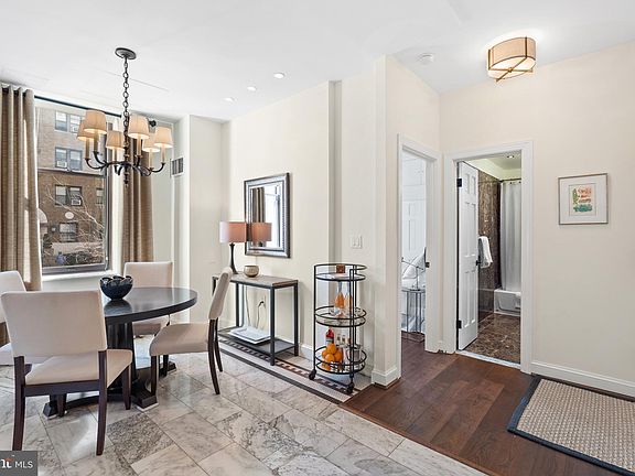 Historic elegance abounds in this sun-drenched condominium. Once part of the elegant lobby and entrance to the ornate dining room of the Cairo Hotel! Unit #102 is the jewel of the Cairo showcasing historic limestone carvings and other elements of a bygone era. Absolutely charming and practical floor plan with two full bedrooms and one large bathroom. Flooded by natural light, this property features high 10+ foot ceilings, original marble floors, mosaic tile, custom coffered ceilings, a stained-glass transom of Cairo Hotel seal, and huge windows. Enjoy coffee or wine on your own private outdoor balcony. You will love the sounds of the birds and views of Q street. This is an incredibly convenient unit with easy access in and out of the building. No elevator needed! The current owners have made several upgrades for a new owner to enjoy, including Pella windows/balcony doors, custom window treatments, custom hand-forged iron balcony railing, electrical upgrades throughout, a refinished kitchen with custom backsplash and a 2 in 1 LG combo washer dryer, just to name a few. The Cairo offers a 24-hour front desk, full-time onsite property management & building maintenance staff. Laundry facilities, trash room, & bike storage are conveniently located one floor below on the ground level. With a WalkScore of 97, this Dupont Circle location provides amazing access to city amenities including Downtown, restaurants, shops and proximity to Safeway, Trader Joes and Whole Foods. The Dupont Circle Metro Station, just 3 blocks west, 16th Street Metro-bus service and a multitude of car share options make this a car-free and care-free urban oasis! Pet friendly! The Cairo is Washington DC’s tallest residential building, with amazing panoramic rooftop views. It’s a towering symbol of the community we live in!