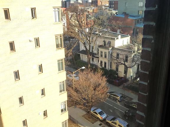 Sunny studio on the 6th floor of the historic Cairo building. East-facing windows illuminate new LVT floors, exposed brick walls and galley kitchen hidden from main living area. Easy walk to 14th Street restaurants and nightlife. Electricity, water included in rent. No pets, no smoking.