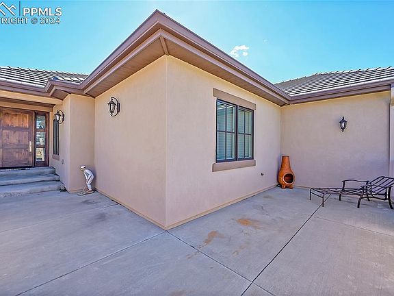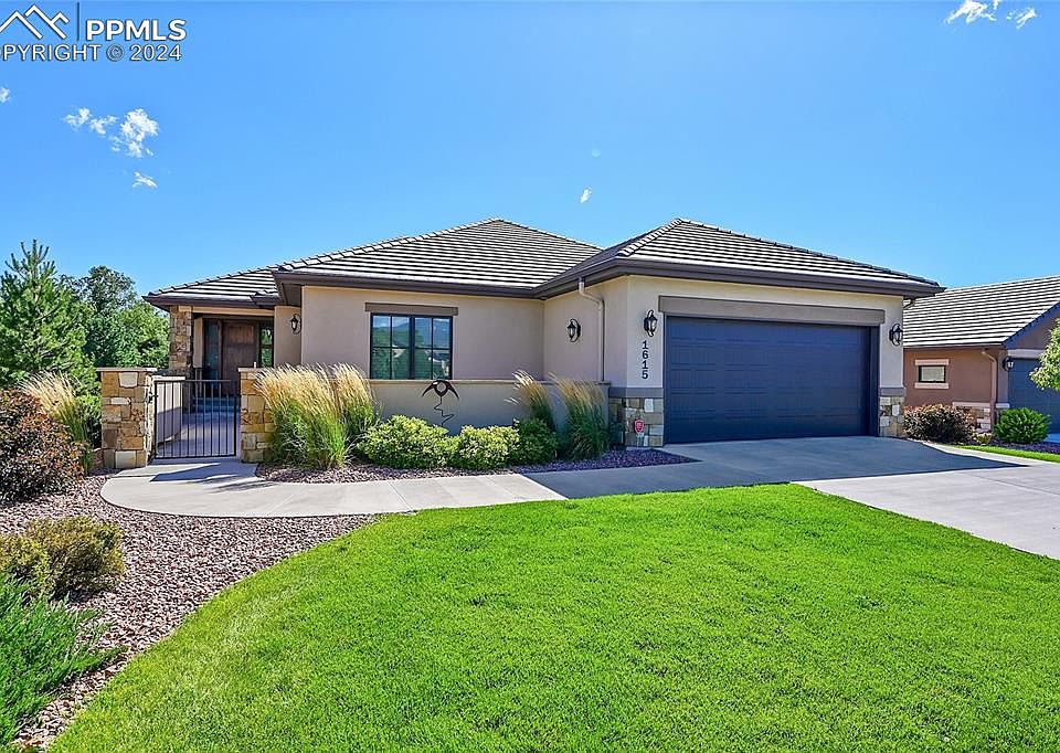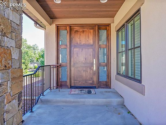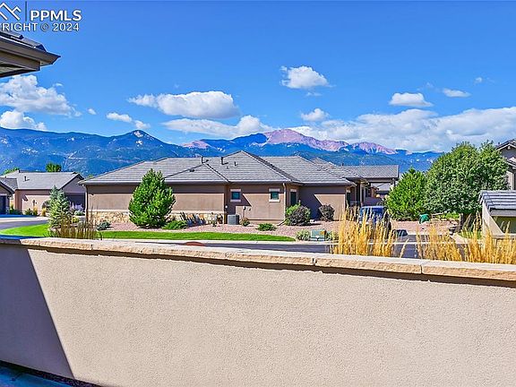 Prepare to be dazzled from the moment you cross the threshold, greeted by the rich allure of genuine hardwood floors, high ceilings, tasteful fixtures, and masterful craftsmanship. Entertain in style within the elegant dining room, or unwind in the grandeur of the great room, crowned by a majestic stone fireplace hearth and access to the covered patio. Culinary enthusiasts will delight in the gourmet kitchen, boasting granite countertops, bespoke cabinetry, and top-of-the-line appliances, including a Subzero refrigerator and gas cooktop. The expansive primary suite is a true retreat, with a lavish 5-piece bathroom adorned with radiant floor heating, a walk-in closet with custom built-ins, and access to the convenient laundry room, complete with a utility sink and window. Another generously sized bedroom with an ensuite bathroom, a powder room, and a practical mudroom round out the main level. The lower level will impress with its soaring ceilings and immense recreation room, offering ample space for a billiards table, television nook, and versatile office or exercise area. The third bedroom is a retreat within itself, complete with its own private bathroom and walk-in closet. You will also find ample storage on this level. The home is loaded with outstanding finishes including real hardwood floors, high-end Pella windows, solid core doors, and custom light & plumbing fixtures. Savor breathtaking views of majestic Pikes Peak from the front porch, or indulge in the tranquil spectacle of golfers navigating Kissing Camels' signature Par 3 from the rear patio. Membership opportunities are available at Kissing Camels Golf Club and the Garden of the Gods Club for access to the golf course, spa, community pool, tennis and pickleball center, and restaurant & hotel with its sweeping views of the Garden of the Gods with Pikes Peak in the background. This is the only gated golf course community in Colorado Springs providing a 24-hour manned security gate,