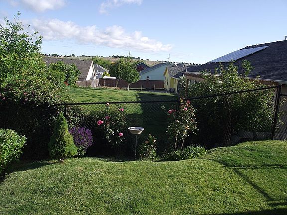 Value priced, quality custom built and professionally landscaped home in Sunridge Estates. Open floor plan; large kitchen has pantry and French door leading to patio; master suite has his and hers walk-in closets and garden tub/shower with tile surround; water feature; fenced backyard and sideyard; Napoleon wood stove; dog kennel; hard to find enclosed water heater, furnace and storage room; community park nearby; new lawn sprinkler system; one owner; VA assumable. Prequalified buyers only. Buyers agents only - 2%.