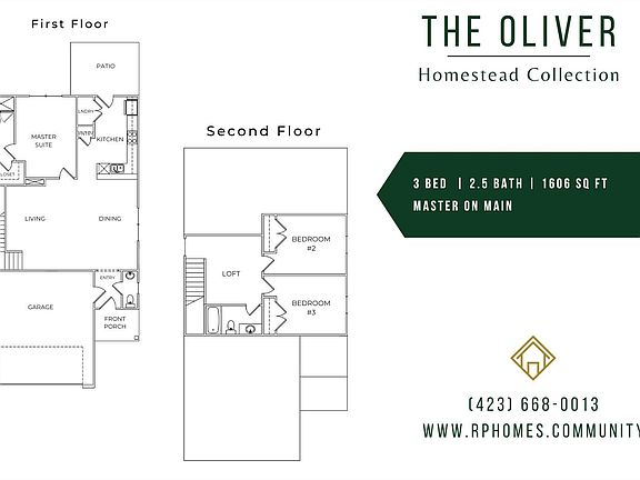 With open sight lines and a purpose for every inch of space, the Oliver boasts an inviting main level that encourages conversation and togetherness. An additional feature is the positioning of the master bedroom on the main level. The second level features a large loft/flex space, two bedrooms, and a full bathroom.