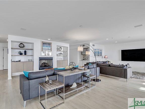 Beautiful Ocean Front Contemporary Condo Penthouse with 3 Bedroom and 3.5 Bathrooms located in the middle of Strand Avenue. All en suite bedrooms, one with Bunkbed and jacuzzi tub/shower combo, one with Queen Bed and tub/shower combo, and Primary with King Bed and double vanity and free standing shower with double shower heads. Wet bar, propane fire place sitting area, TV area at one end of Great Room with the Kitchen at the other end. Both sides of the Great Room have sliding Glass doors that open to the balcony with wonderful Ocean Views. Well equipped Kitchen with propane gas cook top, oven, dishwasher, Microwave, refrigerator, breakfast bar and more. Shared elevator with Unit 9 entering from the back parking lot. Last year used for a STR with bookings already starting for this year. A must see, Unbelievable View and perfect location on Tybee Island for investor or vacation home owner. Sold furnished