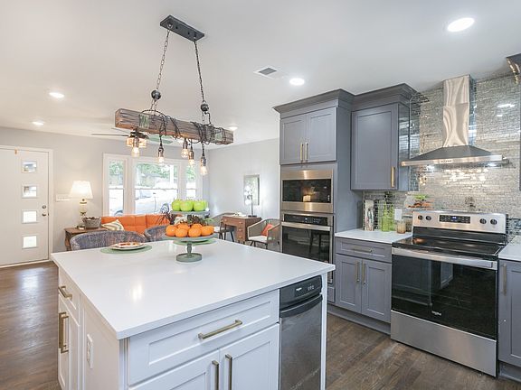 Appraised FHA $670,000. Also known as 1603 Stratford, this spacious mid-century brick home has been remodeled top to bottom, with new replacement windows and doors and fresh paint throughout, new HVAC, refinished hardwood floors, updated plumbing and fixtures, and a new concrete drive. The airy floor plan features an open living and dining area and a kitchen with new stainless appliances and double ovens. The spacious primary suite has a private tile bath and walk-in closet. There are two utility rooms, one on each floor, a second kitchen, a downstairs for entertaining, extra storage, and a basement garage.