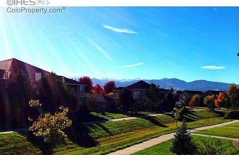 Great location in Quiet End Unit boarding greenbelt, exceptional views of Indian Peaks Mnt Range. Tons of natural light from SW exposure. 30K+ in upgraded interior finishes. Wood shutters cost $1000 each, Beautiful slab granite Island/counters set off 42" upper & lower Maple cabinets, large pantry w/ glass door, appliances included. Hard wood throughout kitchen & Dining. Vaulted ceilings in great room lead outside to private porch, coffered ceilings, custom glass shower door. Built GREEN!